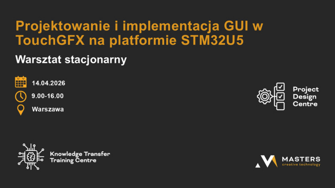 Warsztaty będą koncentrować się na praktycznym wykorzystaniu środowiska TouchGFX do tworzenia nowoczesnych interfejsów graficznych (GUI) dla systemów wbudowanych z wykorzystaniem mikrokontrolera z rodziny STM32U5. Liczba miejsc ograniczona!