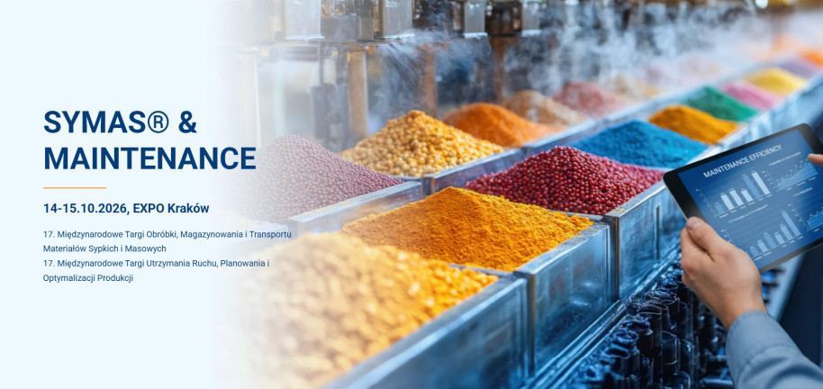 Międzynarodowe Targi Obróbki, Magazynowania i Transportu Materiałów Sypkich i Masowych SYMAS® oraz Międzynarodowe Targi Utrzymania Ruchu, Planowania i Optymalizacji Produkcji MAINTENANCE odbędą się w dniach 14-15 października 2026 r. w Międzynarodowym Centrum Targowo-Kongresowym EXPO Kraków.