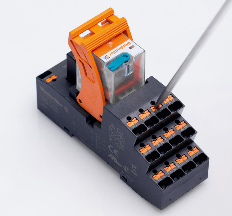 Podstawki przekaźnikowe z przyłączami push in i szeroką gamą połączeń mostkowych sprawiają, że okablowanie jest szybkie i łatwe. Przyłącza można obsługiwać popularnymi w branży śrubokrętami o szerokości do 5,5 mm, co umożliwia szybką i wydajną instalację oraz konserwację. Blokowane gniazda testowe w podstawkach CUBESERIES oferują zdecydowaną przewagę: umożliwiają precyzyjną symulację cyfrowych sygnałów wejściowych z kodowaniem kolorami przekaźnika dla prądu przemiennego (pomarańczowy) i stałego (niebieski). Funkcja ta pozwala na stopniową, kontrolę maszyn i systemów podczas uruchamiania i konserwacji. Takie rozwiązanie zapewnia łatwość i szybkość pomiarów, brak potrzeby ingerencji w okablowanie oraz wydłużenie żywotności samych przyłączy, jak również większe bezpieczeństwo pomiarów podczas bezpośredniej pracy pod napięciem.