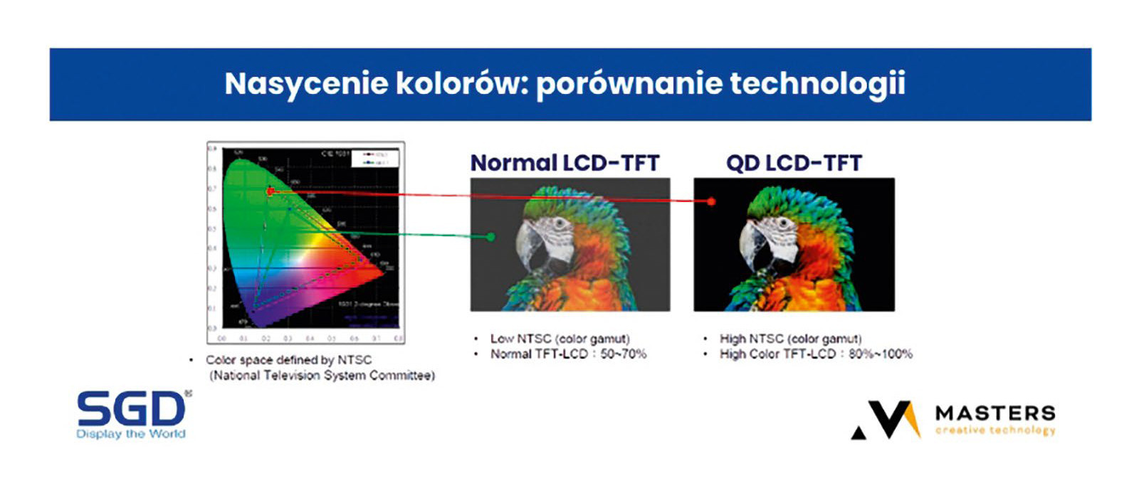 Spośród oferowanych przez producenta Goldentek Display Corporation (SGD) rozwiązań outdoorowych (tzw. sun readable, czytelnych w oświetleniu słonecznym) na szczególną uwagę zasługują wyświetlacze w technologii Quantum Dot (QD), których parametry przewyższają dotychczasowe osiągnięcia w tej kategorii. Ich zaletą jest przede wszystkim duże nasycenie kolorów. Znajdują one dzięki temu zastosowanie w środkach komunikacji i infrastrukturze miejskiej – w panelach kierowców, biletomatach, kasownikach czy punktach informacji.