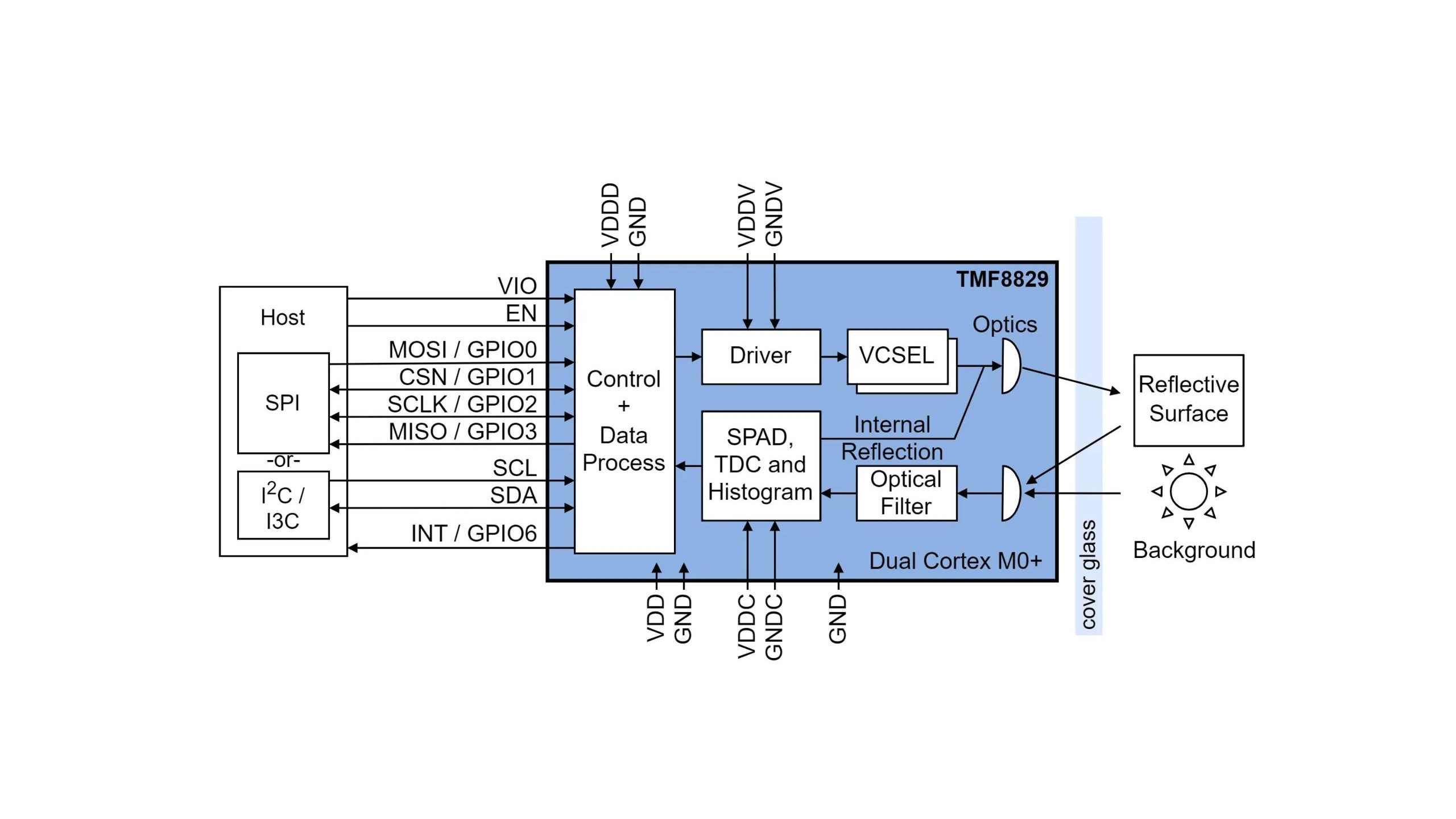 TMF8829 to czujnik dToF (direct Time-of-Flight), oparty na technologii SPAD, przeznaczony do precyzyjnego pomiaru odległości w wielu strefach jednocześnie. Może być konfigurowany do pracy z matrycą od 8 x 8 do 48 x 32 stref w polu widzenia 80°. Duża gęstość stref pozwala na rozróżnianie obiektów znajdujących się blisko siebie lub różniących się jedynie drobnymi detalami. W porównaniu z wcześniejszymi odpowiednikami opartymi na macierzy 8 x 8, TMF8829 oferuje ponad 20-krotnie większą rozdzielczość przestrzenną, umożliwiając tworzenie szczegółowych map głębi 3D.