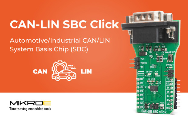 CAN-LIN SBC Click to płytka interfejsowa do systemów embedded, umożliwiająca obsługę magistral CAN oraz LIN. Została opracowana z myślą o zastosowaniach motoryzacyjnych i przemysłowych, w których wymagana jest szybka komunikacja w trudnych warunkach środowiskowych oraz funkcje zarządzania zasilaniem i diagnostyki. Płytka jest zgodna z gniazdem mikroBUS i może współpracować z dowolnym systemem nadrzędnym, obsługującym ten standard.