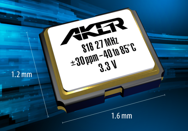 Aker Technology rozpoczyna masową produkcję oscylatorów kwarcowych serii S16, dostępnych w wersjach na zakres częstotliwości od 2,0 MHz do 60 MHz. Mogą one znaleźć zastosowanie w urządzeniach przenośnych, modułach komunikacyjnych, czujnikach, małogabarytowych systemach embedded oraz wszędzie tam, gdzie kluczowe znaczenie mają małe gabaryty, szeroki zakres napięcia zasilania i odporność na narażenia środowiskowe, natomiast dokładność stabilizacji nie jest priorytetem. Są dostarczane w obudowach SMD o wymiarach 1,6 x 1,2 x 0,7 mm i mogą być zasilane napięciem z zakresu od 1,62 V do 3,63 V. Stabilność wynosi w zależności od wersji od ±25 ppm do ±100 ppm. Szeroki zakres temperatury roboczej od -40 do +125°C w przypadku modeli "extended", pozwala na zastosowania również w środowisku przemysłowym.