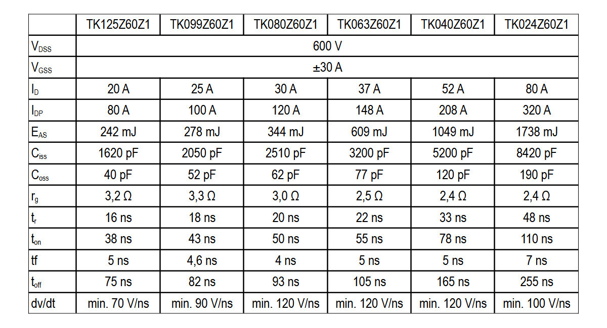 Tranzystory TKxxxZ60Z1 są produkowane w 4-pinowych obudowach TO-247-4L(X), zawierających oddzielną linię źródła do sterowania bramką. Redukuje to wpływ dużej indukcyjności wyprowadzenia źródła wewnątrz obudowy, co jest częstym problemem w konwencjonalnych obudowach 3-pinowych. Indukcyjność ta generuje napięcie przeciwelektromotoryczne, zmniejszające efektywne napięcie sterowania bramką, spowalniając szybkość przełączania tranzystora. Obudowa 4-pinowa zawiera dodatkową linię źródła, umiejscowioną blisko struktury FET, dzięki czemu napięcie VGS odpowiada w przybliżeniu napięciu sterowania bramką.