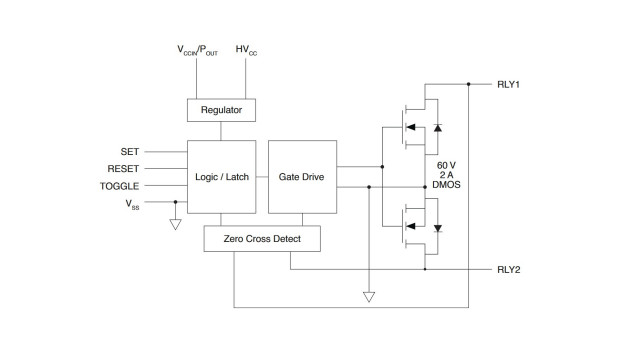 CPC1601M wykorzystuje architekturę zatrzaskową, gdzie zmiana stanu przekaźnika następuje po podaniu pojedynczego impulsu sterującego. Dzięki temu, pobiera energię wyłącznie w momencie przełączania. Może być zasilany bezpośrednio z obciążenia lub z systemowego źródła zasilania. W pierwszym przypadku nie pobiera energii z systemu nadrzędnego, co zapewnia zerowy pobór mocy w trybie czuwania.