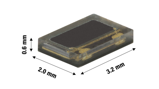 Vishay Intertechnology wprowadza na rynek nową krzemową fotodiodę PIN o dużej czułości, zamykaną w obudowie SMD o wymiarach 3,2 x 2,0 x 0,6 mm. Pomimo niewielkich gabarytów, charakteryzuje się ona stosunkowo dużą powierzchnią aktywną (2,8 mm²), co pozwala na uzyskanie dużego prądu fotoelektrycznego w kierunku zaporowym, wynoszącego 11 µA przy długości fali 525 nm, 14 µA przy 660 nm oraz 16 µA przy 940 nm.
