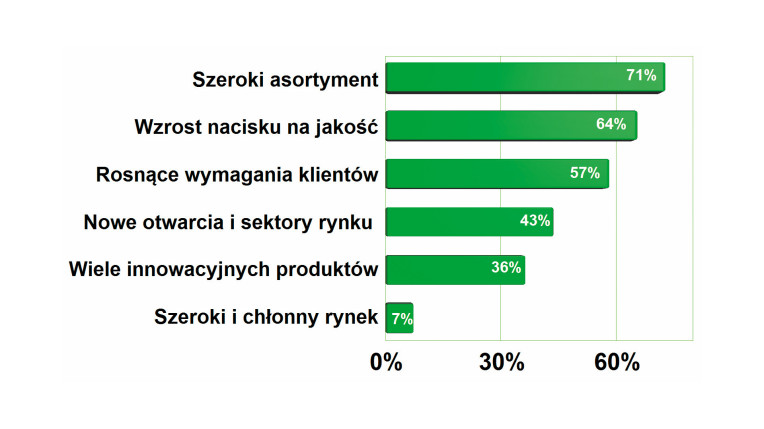 Listę najważniejszych czynników pozytywnie wspierających rynek otwiera szeroki asortyment dostępnych produktów, pozwalający dobrać element przełączający bez konieczności kompromisu. Kolejne miejsce to coraz większe znaczenie jakości, zwiększające się wymagania (potrzeby) klientów. Czwarta pozycja to szeroki i chłonny rynek. Wysokiej jakości produkty zapewniają trwałość projektów oraz ich bezusterkowość, a co za tym idzie reklamacje oraz ewentualne zwroty lub koszty serwisu są sprowadzone do minimum, co pokazuje, że wiele kryteriów można sprowadzić do małych kosztów posiadania.