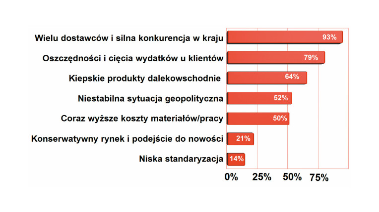 Listę problemów dla branży otwiera pozycja związana silną konkurencją na rynku przekaźników w kraju wynikającą z wielu firm aktywnych w tej branży oraz dużej popularności takich elementów, a dalej oszczędności i cięcia kosztów u klientów. Negatywnym czynnikiem są też kiepskie produkty dalekowschodnie, niestabilna sytuacja geopolityczna oraz ogólny wzrost kosztów działalności gospodarczej i cen. Wspólnym mianownikiem dla prezentowanego wykresu są czynniki ekonomiczne.