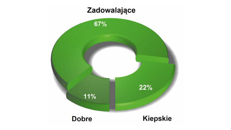 Warunki panujące na rynku oświetlenia LED w 2025 zostały ocenione przez dwie trzecie pytanych jako zadowalające, ale w porównaniu z naszymi poprzednimi badaniami ankietowymi sprzed kilku lat na wykresie wyraźnie przybyło ocen kiepskich. Wcześniej tego pola na wykresie nie było wcale lub miało ono minimalną wielkość, teraz obejmuje już co piątą firmę. Jest to niestety znak, że fala zapotrzebowania na LED-owe rozwiązania energooszczędne, która pojawiła się na rynku dwa lata temu w konsekwencji podwyżek cen energii, już wygasła, a na dodatek kiepska sytuacja na rynku przemysłowym w Polsce i krajach sąsiednich wyhamowała inwestycje w rozwiązania specjalistyczne. Oświetlenie LED to uniwersalny obszar aplikacyjny obejmujący wiele branży stąd koniunktura w omawianym obszarze odzwierciedla koniunkturę średnią.