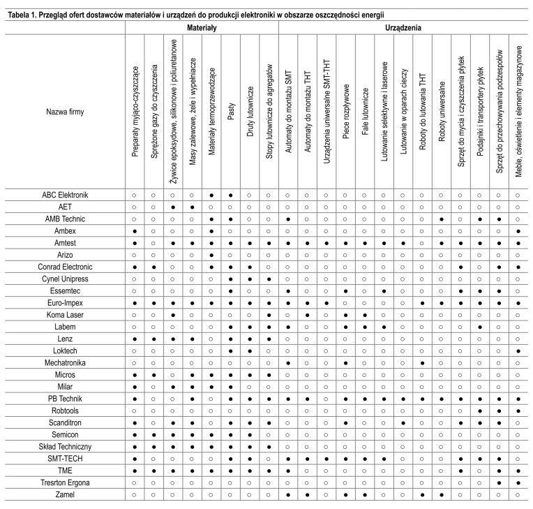 Źródłem wszystkich danych przedstawionych w tabelach oraz na wykresach są wyniki uzyskane w badaniu ankietowym przeprowadzonym wśród dostawców materiałów i urządzeń do produkcji elektroniki w Polsce.