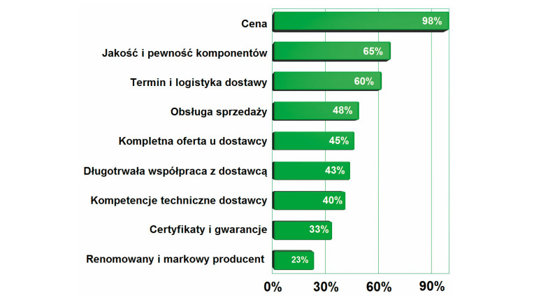 Krajowe firmy dystrybucyjne z roku na rok coraz chętniej i z mniejszymi obawami wybierane są przez zagraniczne firmy z UE i USA jako dostawcy komponentów, a stopniowy wzrost takich zamówień jest z pewnością dowodem większego zaufania rynku. Jednocześnie rośnie znaczenie dostaw bezpośrednich od producentów oraz kompleksowego zaopatrzenia, które są postrzegane jako metody obrony przed coraz większymi kosztami działalności.