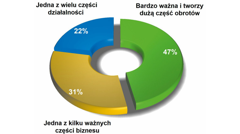 Usługi EMS łączą niczym wspólny mianownik wiele firm, dla których taka działalność jest rdzeniem biznesu lub też dodatkiem do innej działalności np. dystrybucyjnej lub produkcji własnej, jako sprzedaż nadwyżek mocy produkcyjnych. Wykres ocenia, jakie są udziały w rynku takich grup. Największa część, blisko połowa, to firmy specjalizowane, a więc takie, które specjalizują się w usługach kontraktowych i jest to dla nich podstawa działalności. Mniej więcej jedna trzecia to przedsiębiorstwa, dla których EMS nie jest jedyną formą zarabiania, ale cały czas bardzo istotną. Co piąta firma traktuje je jako niewielki dodatek – zapewne tyle jest firm, które próbują wykorzystać posiadany do własnych celów park maszynowy do tego, aby realizować zlecenia spoza firmy. Co istotne, udziały procentowe w ostatnich latach nie zmieniają się. W naszej poprzedniej edycji raportu zanotowaliśmy praktycznie takie same wskaźniki, a różnice nie przekraczają 3%.