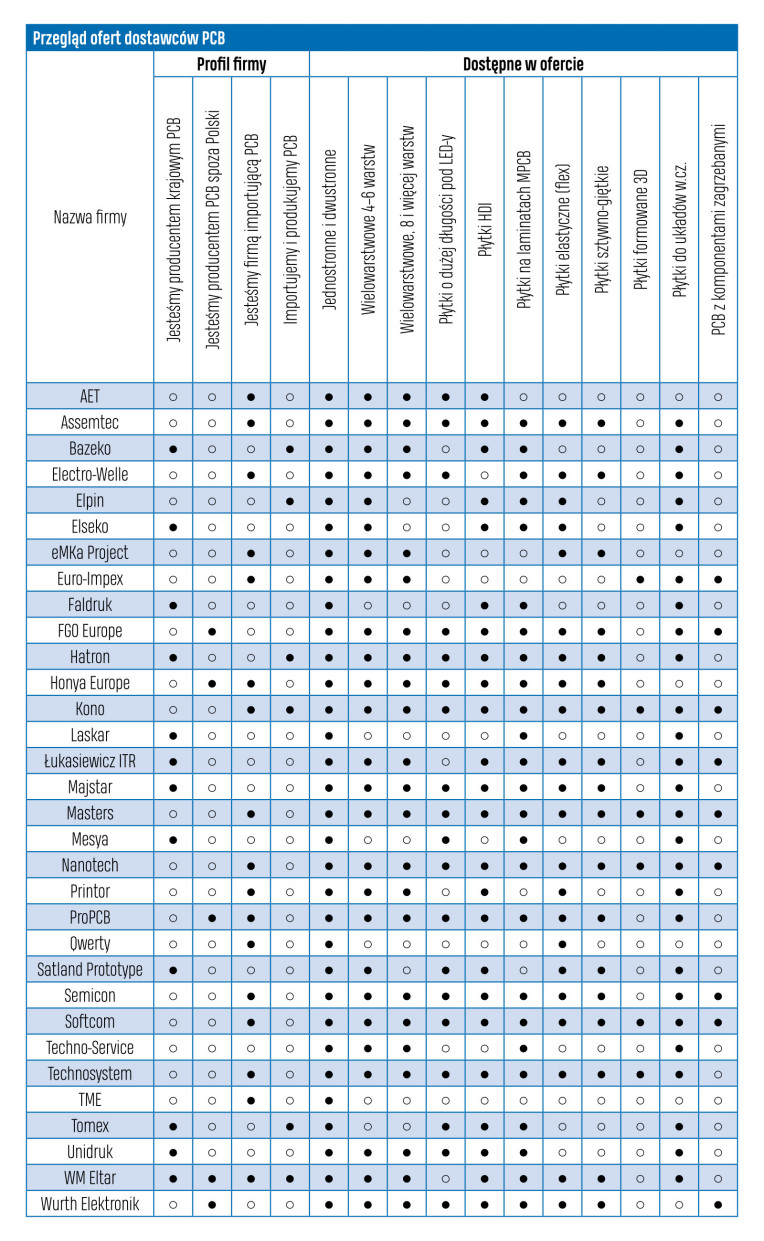 Analogicznie producenci kontraktowi zapewniają klientom obecnie płytki drukowane i komponenty w ramach kompleksowych usług produkcyjnych. W ogromnej większości płytki te są zamawiane w fabrykach chińskich, niemniej celem jest elastyczność, czyli różne źródła dostaw, w zależności od wymagań technologicznych, terminu, wielkości serii itd. Z całą pewnością można jednak stwierdzić, że producenci EMS są dostawcami obwodów drukowanych w Polsce i tworzą wyraźnie odrębny segment.