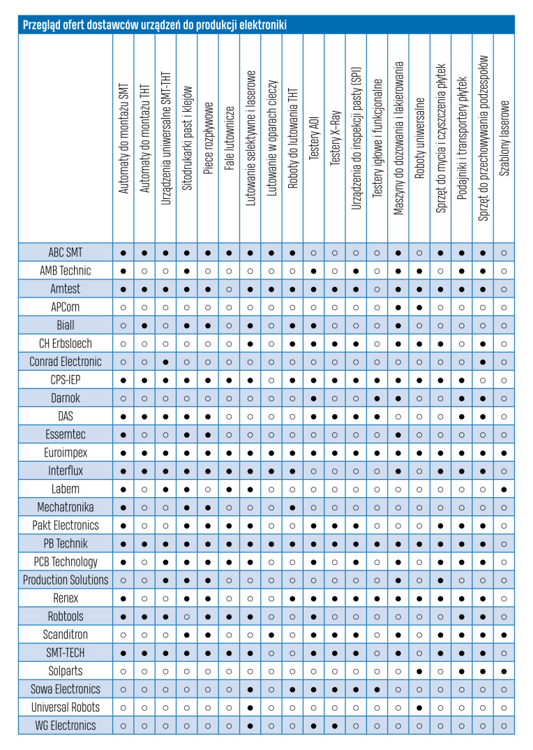 Główne cechy ofert brane pod uwagę przy kupowaniu urządzeń do produkcji elektroniki
