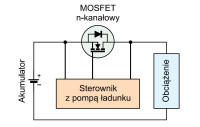 Rys. 1. Potrzebna w układzie z n-kanałowym MOSFET-em pompa ładunku do zasilania bramki komplikuje układ i może wywoływać EMI