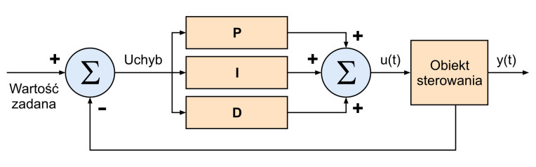 Człon całkujący z kolei sumuje (całkuje) uchyb w czasie. Jego głównym zadaniem jest likwidacja stałej różnicy między wartością zadaną i rzeczywistą. Człon I dąży do tego celu, dodając do sygnału wyjściowego regulatora wartość, która jest proporcjonalna do sumy błędów chwilowych. W efekcie nawet jeżeli są małe, ale utrzymują się przez dłuższy czas, ich skumulowana wartość będzie rosła. To wymusi silniejszą odpowiedź regulatora, który będzie systematycznie korygował uchyb ustalony aż do jego całkowitego wyeliminowania. Człon całkujący działa wolniej niż proporcjonalny. Zbyt duża wartość jego wzmocnienia szybko skutkuje przeregulowaniem.