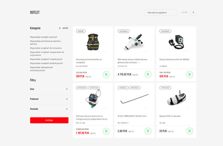 Oferta outletowa obejmuje szeroki zakres kategorii: od lutowania i mikroskopii, przez akcesoria ESD, po elementy wyposażenia stanowisk i urządzenia automatyki. Wszystkie produkty pochodzą z oficjalnej dystrybucji Grupy RENEX i spełniają standardy jakości obowiązujące w regularnej ofercie. W sprzedaży znajdują się egzemplarze demonstracyjne, powystawowe oraz końcówki serii, które zachowują pełną funkcjonalność i gotowość do pracy w środowisku przemysłowym mimo obniżonej ceny.